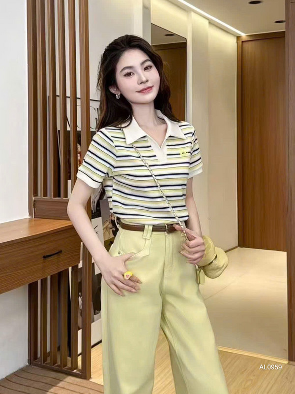 ÁO THUN SỌC NGANG CÓ CỔ AL0959