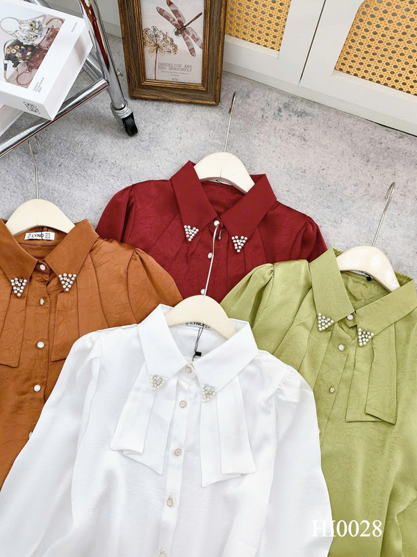 ÁO SƠ MI CỔ NƠ BÊN ĐÍNH NGỌC TRAI HI0017