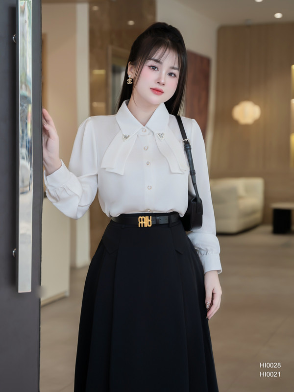 ÁO SƠ MI LỤA CỔ NƠ CÁCH ĐIỆU HI0025