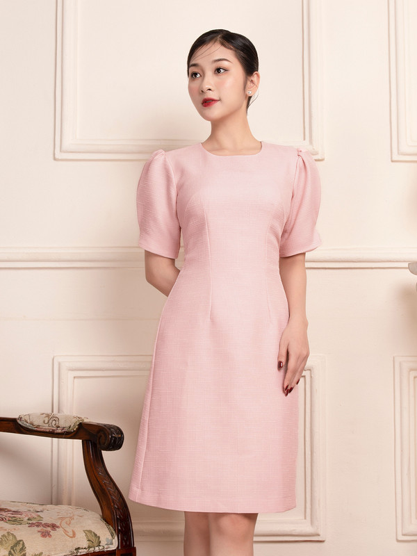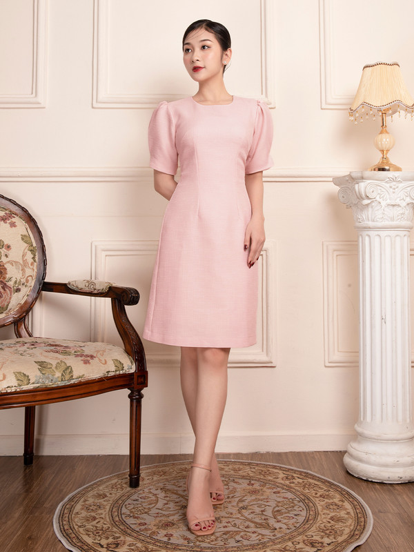 - Kiểu dáng: Đầm suông dáng chữ A, tay xếp ly, có lót 2 lớp, dây kéo sau