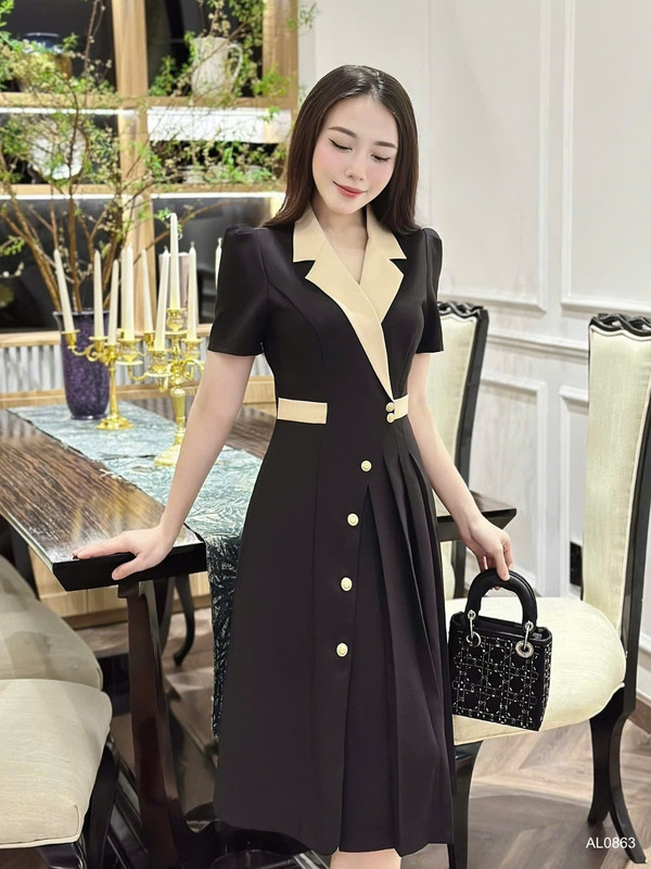 ĐẦM DÀI CỔ CHỮ U GIẢ VEST AL0860