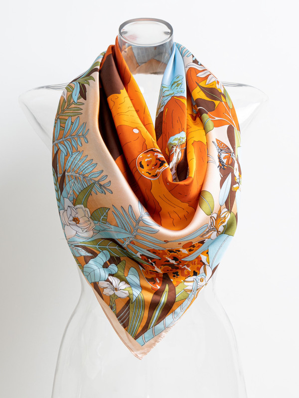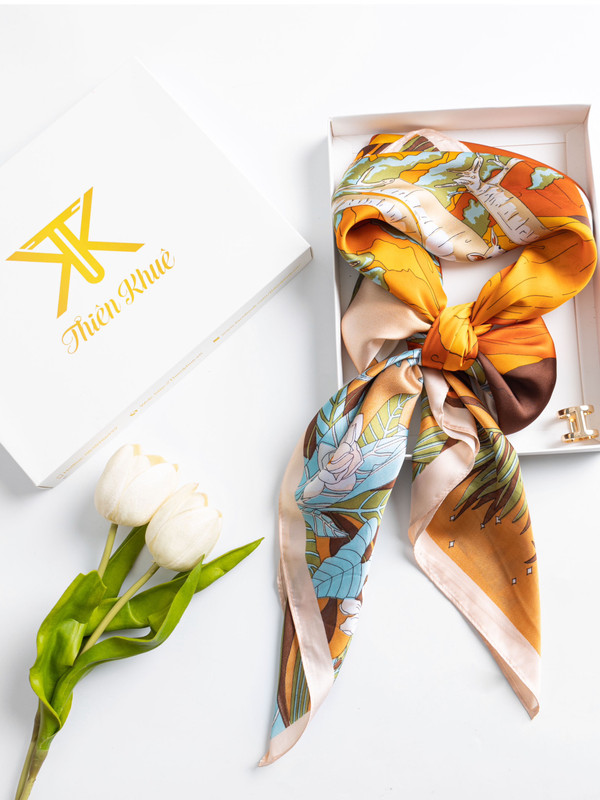 KHĂN LỤA K0003 HỌA TIẾT LÁ HOA VÀNG